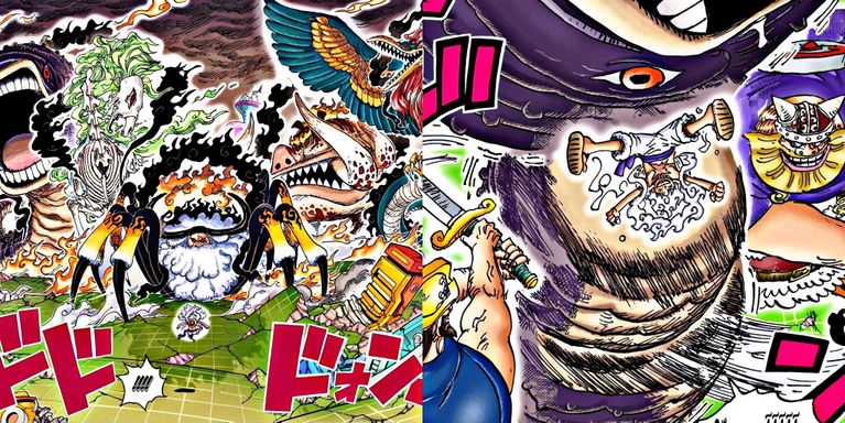 1. 오로성과의 전투 : 이번 화에서는 루피가 도리와 브로기와 함께 오로성과 대면하는 장면이 그려졌습니다. 이 전투는 여전히 진행 중이며, 루피는 오로성을 상대로 야구 방망이를 이용해 홈런을 치는 듯한 공격으로 치명타를 가합니다.